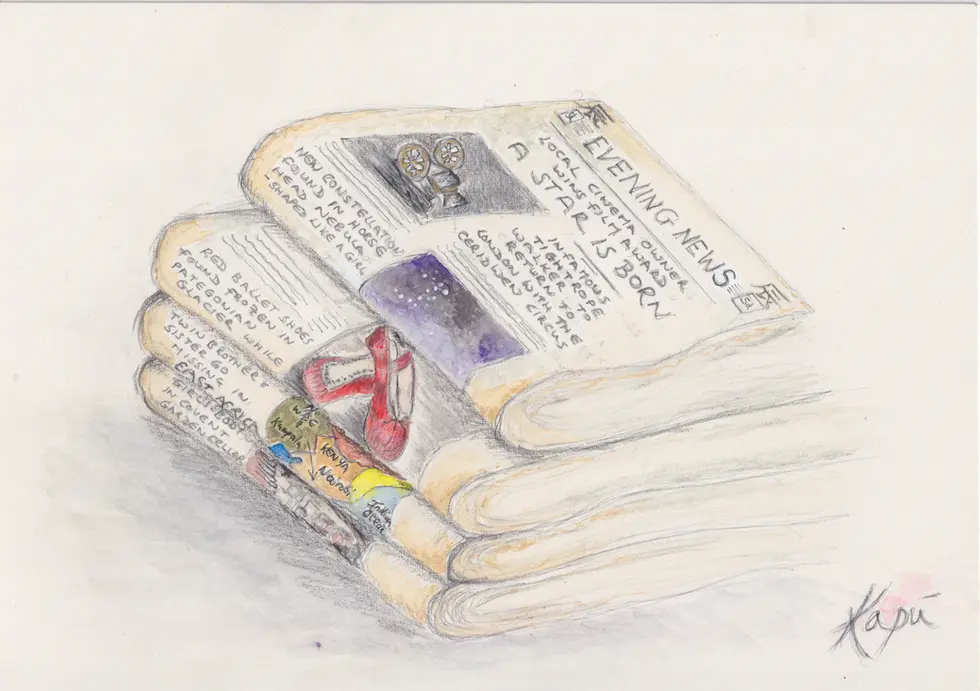 Evening News is the illustration for my short story ‘Stars’, the final story in Dreamstreet, a special illustrated collection of short-stories which I wrote between 2022 and 2024.